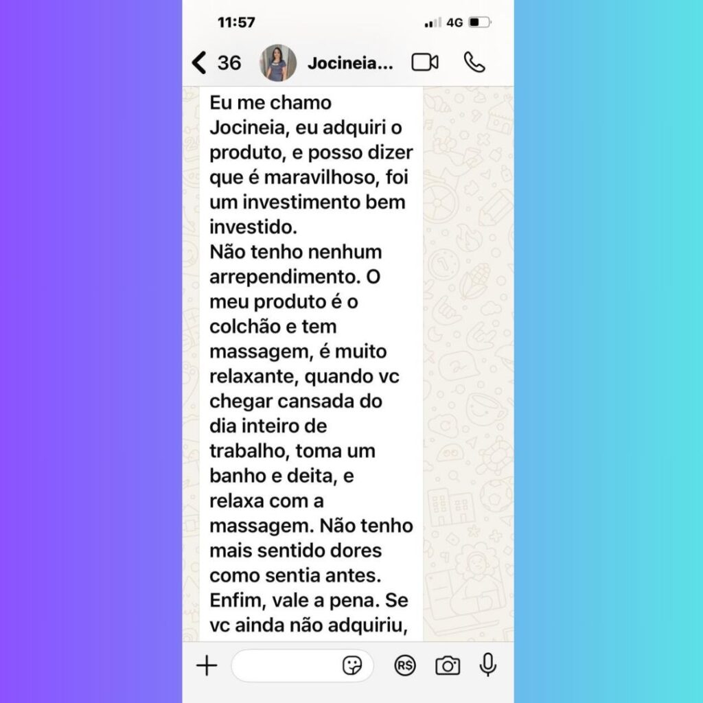 O Relax System é um vibromassageador eletrônico com 9 modos de massagem ajustáveis por controle remoto ou aplicativo. Ele oferece uma massagem relaxante em 5 áreas do corpo, promovendo conforto e alívio de tensões enquanto você descansa.