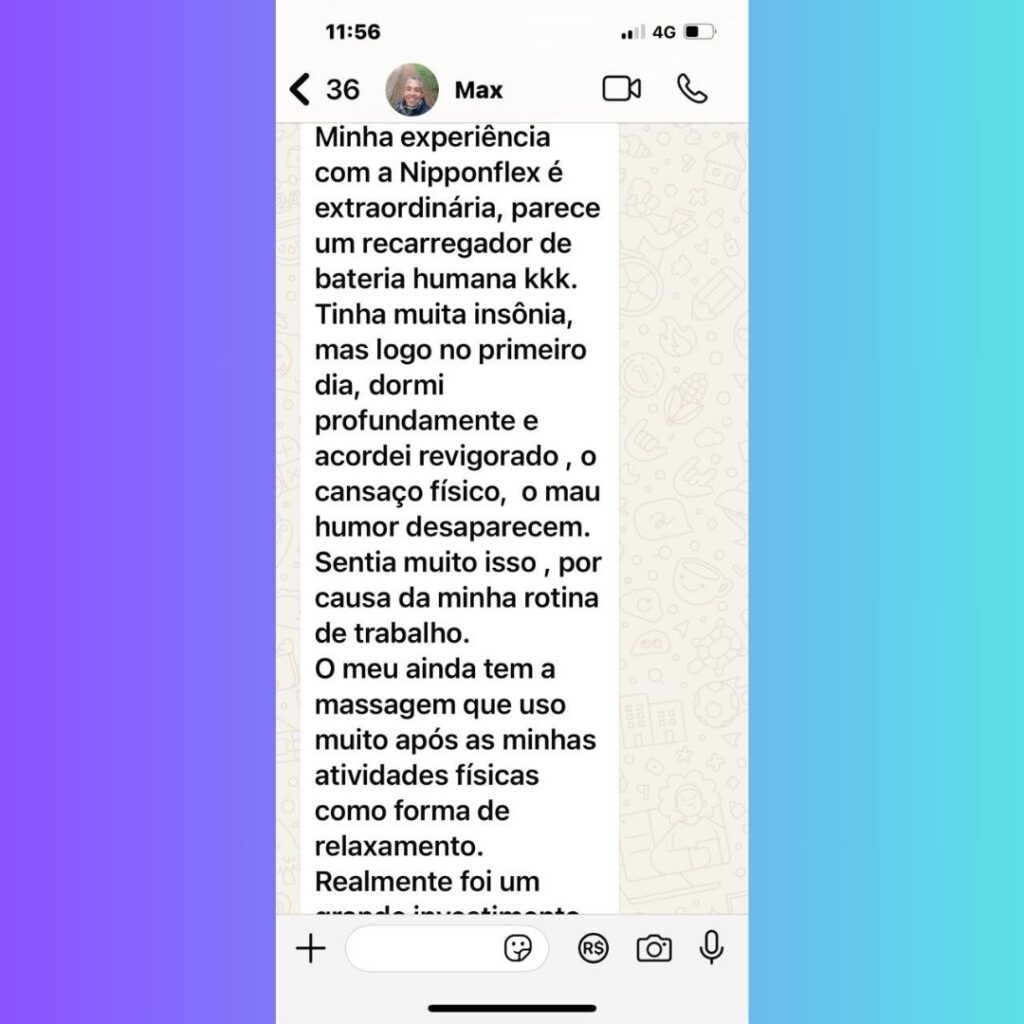 Os produtos Nipponflex combinam tecnologias exclusivas como Rabatan®, FIR Power®, MFP® e Íon Balls, desenvolvidas por especialistas japoneses. Essas tecnologias promovem bem-estar, alívio de tensões musculares e melhor qualidade de sono, além de serem patenteadas em diversos países.